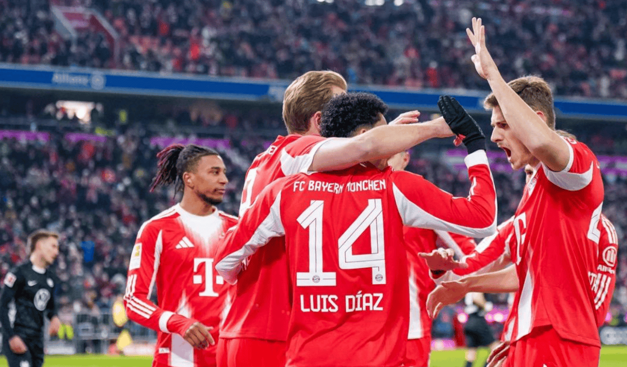 比赛刚开始5分钟,拜仁就进球了!迪亚斯在左侧下底传中,费舍尔竟然门前把球踢进自家球门。这粒乌龙球让人感到有些匪夷所思。拜仁取得梦幻般的开局。6分钟后,奥利塞送出精准长传球,迪亚斯前插,在禁区内卸下皮球后起脚射门,结果踢偏了。第13分钟,沃尔夫斯堡扳平比分。佩契诺维奇单刀低射破门。